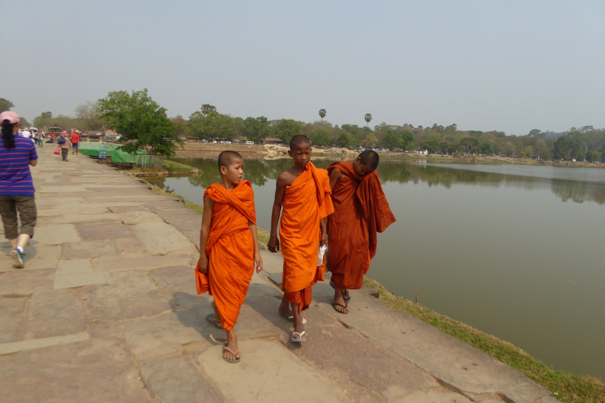 On prend un saut, on achète un liquide bénit à l’entrée du temple, et à l’aide de branches, on arrose les bouddhas partout dans le temple !